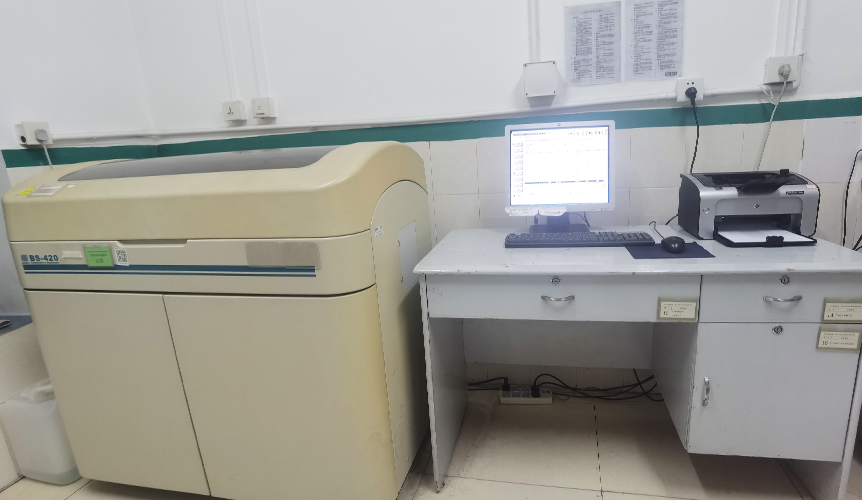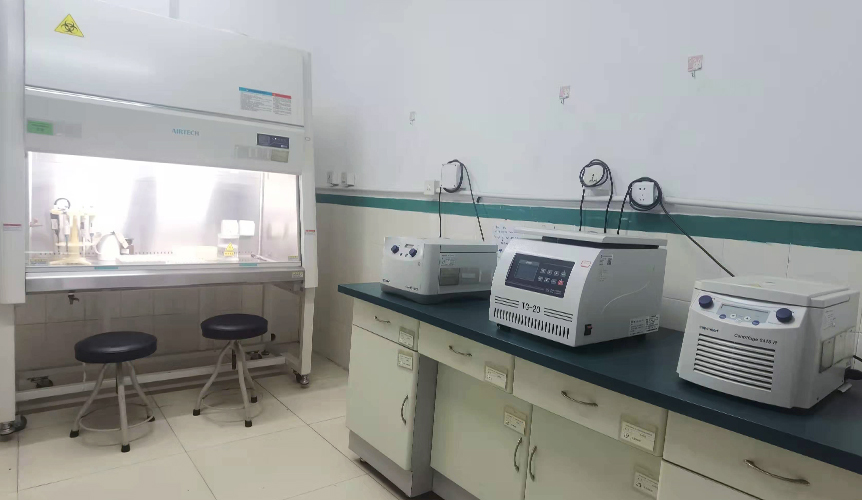 实验室面积650余平方米,设有血液生理生化检测、病原微生物检测、免疫检测、寄生虫检测、环境检测等5个检测专业组,拥有全自动生化仪、全自动血细胞分析仪、全自动凝血分析仪、电解质分析仪、尿液分析仪、酶标仪、奥林巴斯数码成像系统显微镜、数位式照度计、数字声级计、数位温湿度表、风速测量仪、便携式氨浓度检测仪等设备,可以满足实验动物血液、体液指标检测、抗原抗体、病原微生物、寄生虫检测以及实验动物环境监测等工作,与检测业务相适应的仪器设备及配属设备30余(台)套。
